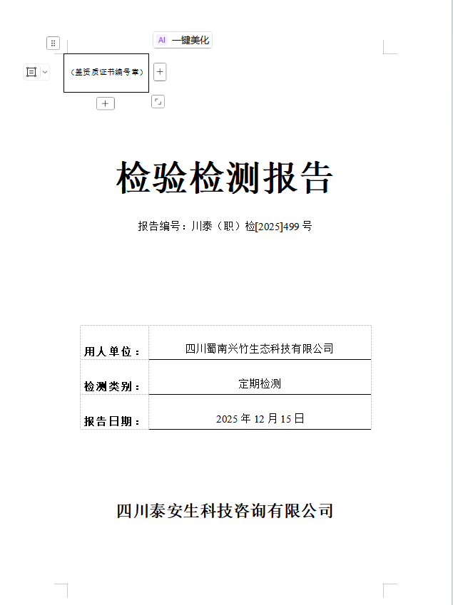 四川蜀南兴竹生态科技有限公司—川泰(职)检[2025]499号