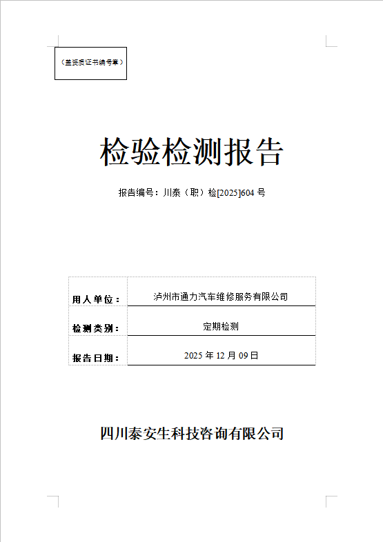 泸州市通力汽车维修服务有限公司—川泰(职)检[2025]604号