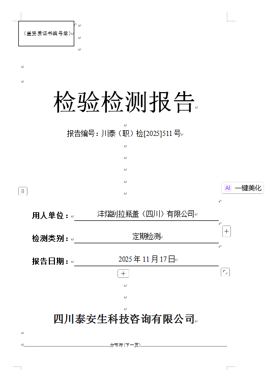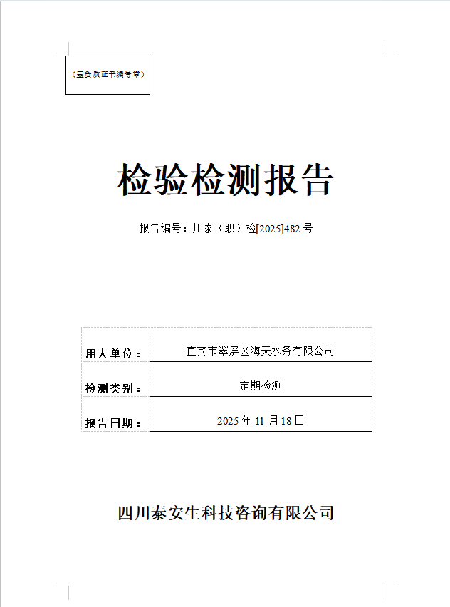 宜宾市翠屏区海天水务有限公司—川泰(职)检[2025]482号