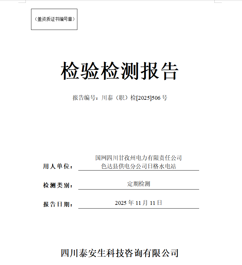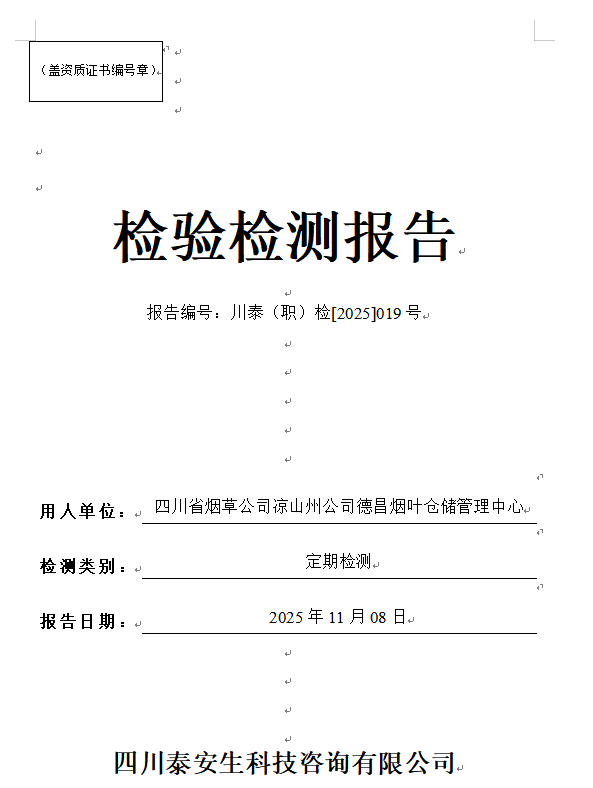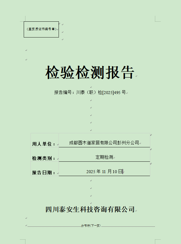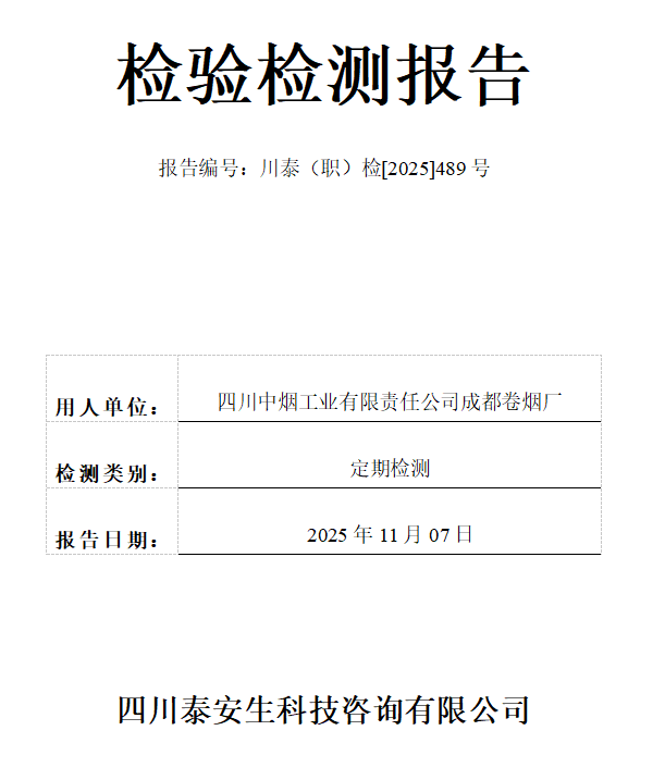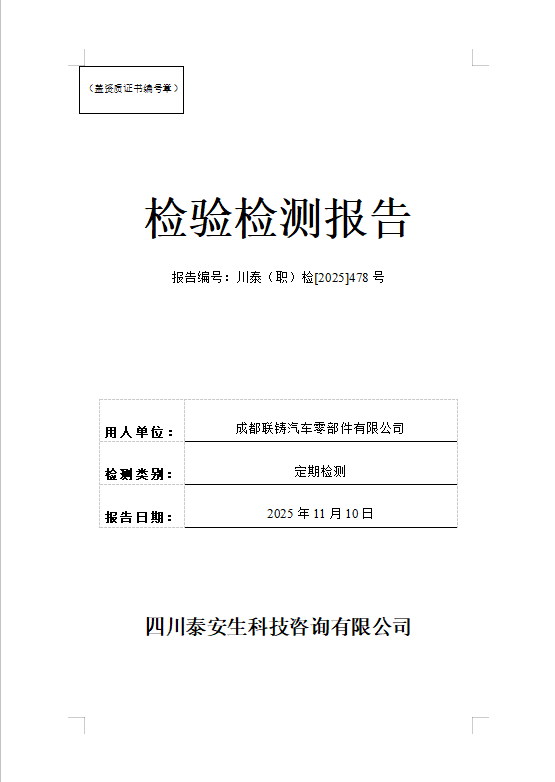 成都联铸汽车零部件有限公司——川泰(职)检[2025]478号